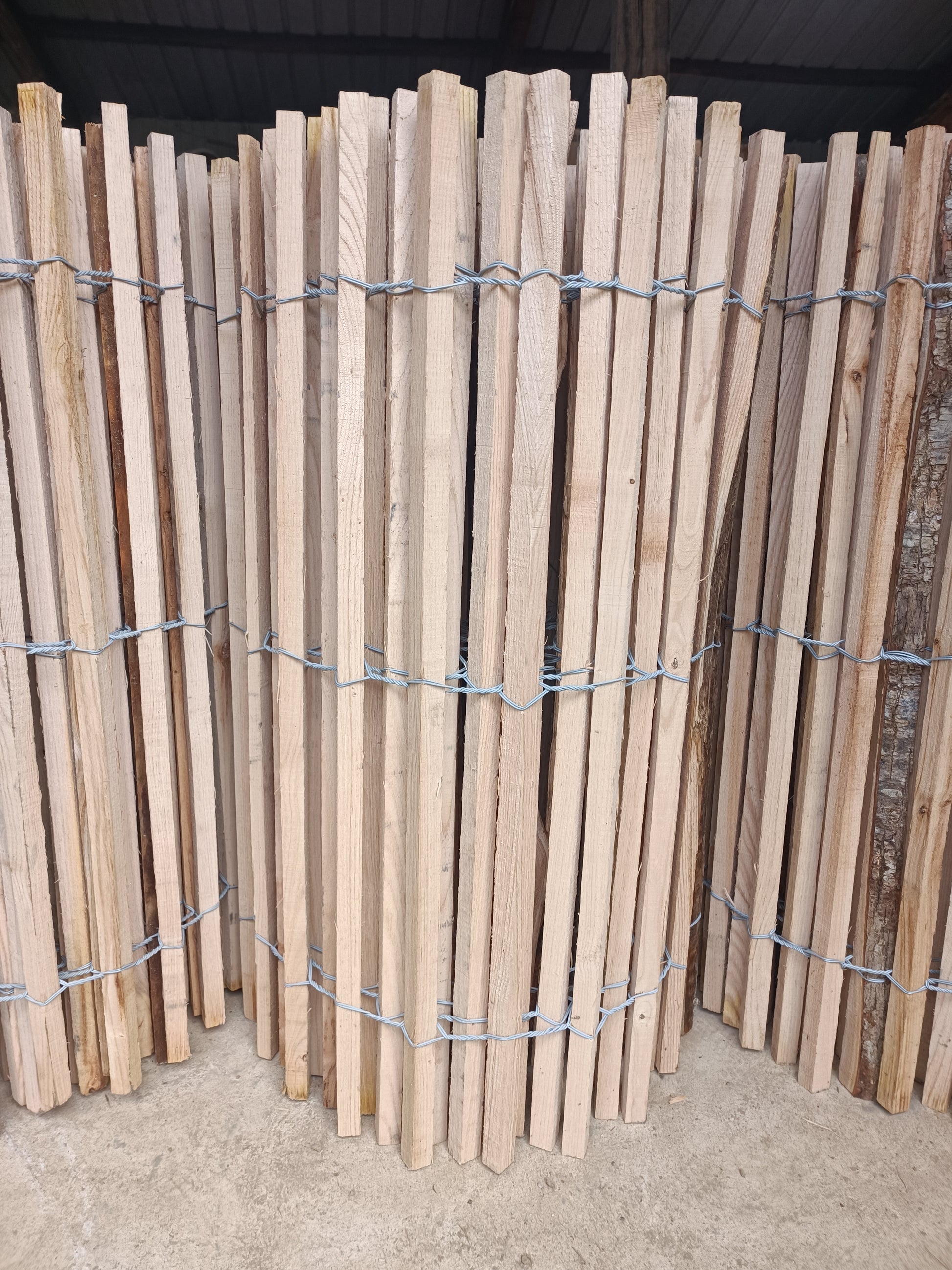 Nos ganivelles sont fabriquées en châtaignier, un bois naturellement résistant aux intempéries et à l'humidité. Issu de production locale, il est scié sur place afin de garantir robustesse et qualité.